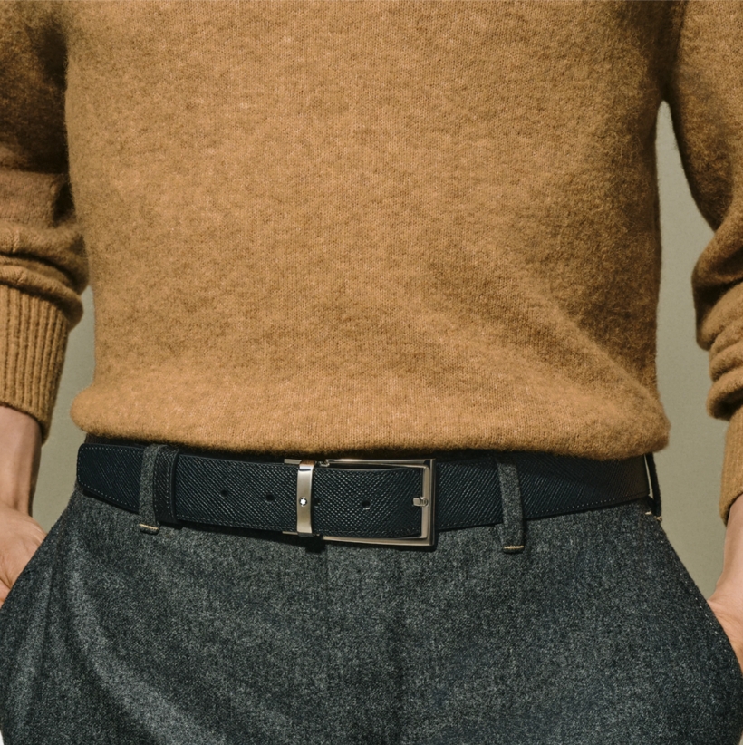 Двухсторонний мужской ремень Montblanc: кожа черного и коричневого цвета 35 мм от магазина премиальных ручек Premium Pens в Оренбурге.